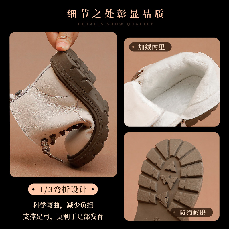 加绒二棉鞋 时装 宝宝秋冬季 舞玛女童马丁靴儿童真皮短靴子2025新款