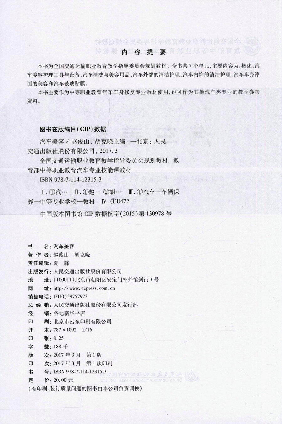 现货 汽车美容 全国交通运输职业教育教学指导委员会规划教材 赵俊山 正版 中等职业教育汽车专业技能课教材 胡克晓 人民交通