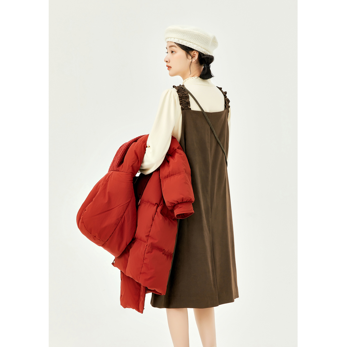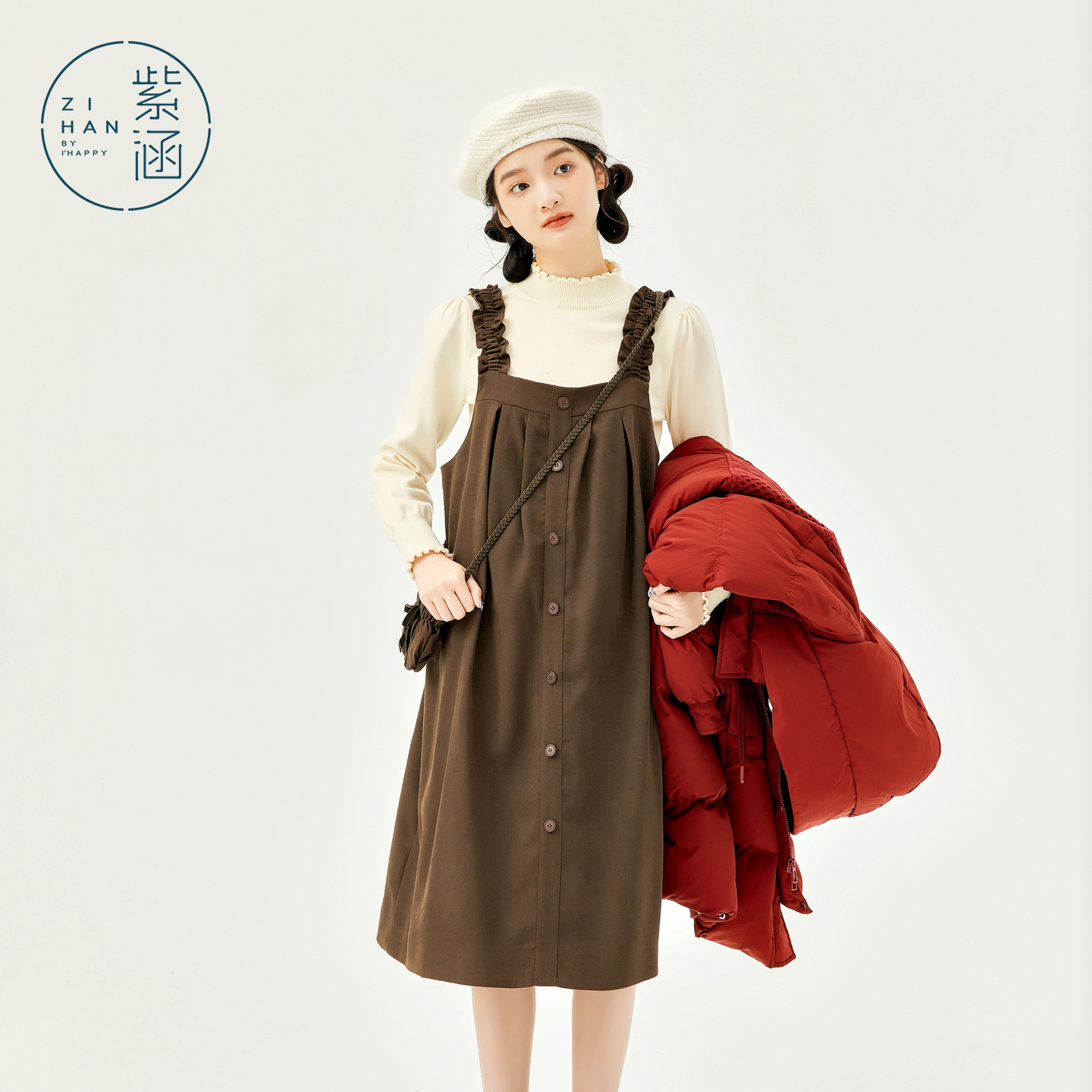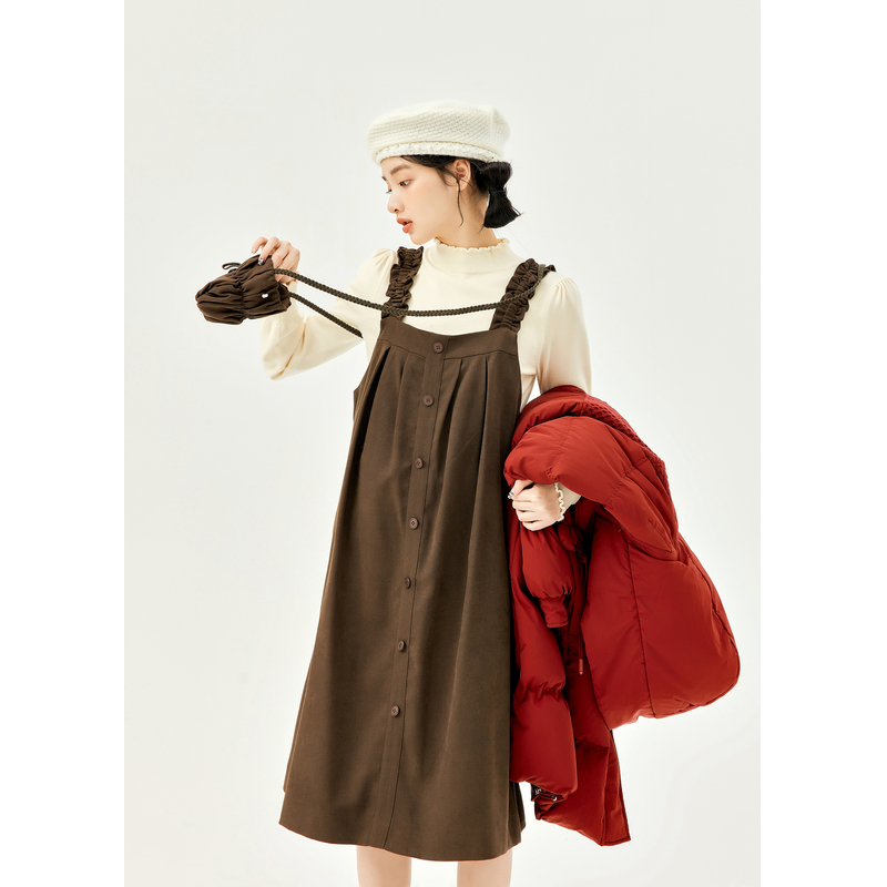 早秋穿搭套装 搭配蕾丝打底衫 新款 咖色亚麻吊带连衣裙女2025年秋季