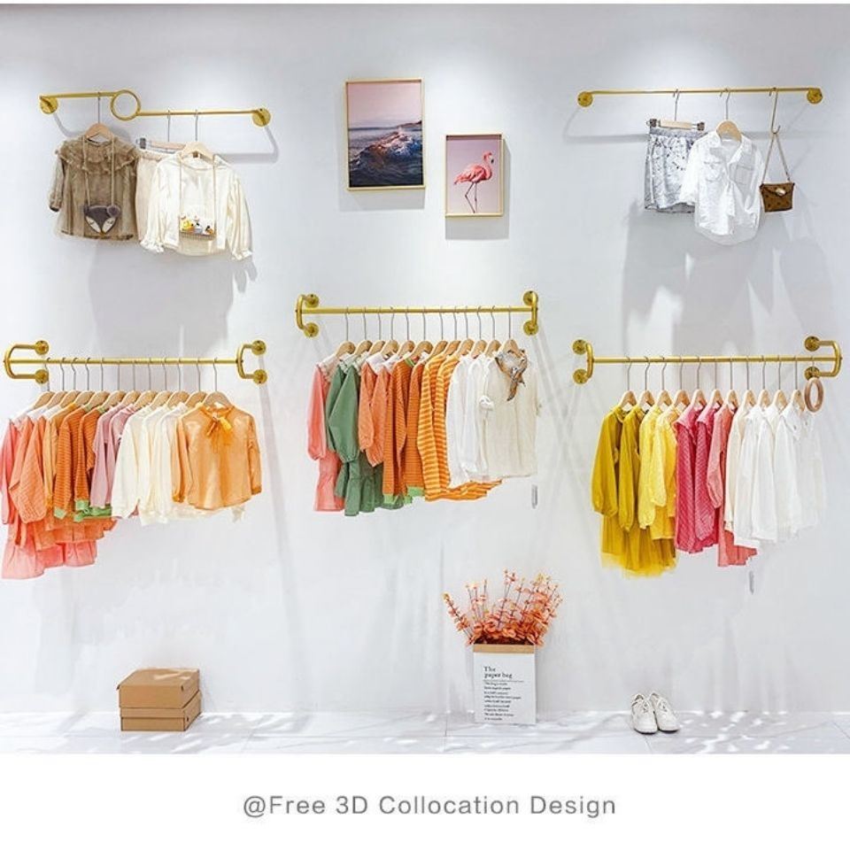 店展示架挂衣架 组合服装 童装 店铺货架金色简约整套店铺上墙壁挂式