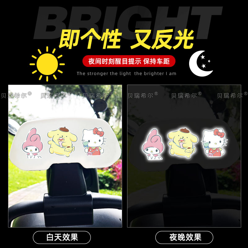 三丽鸥可爱反光贴纸电动车卡通装 饰头盔小牛爱玛晴天九号划痕车贴
