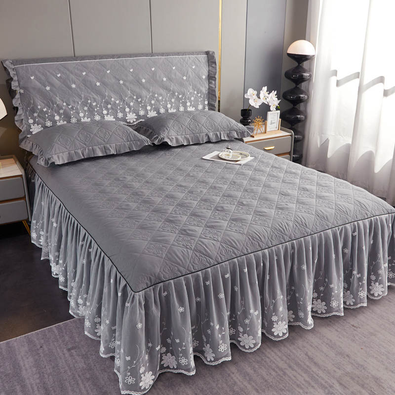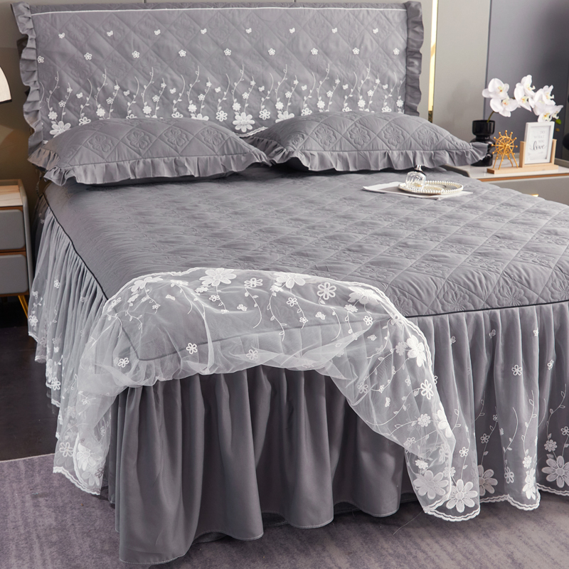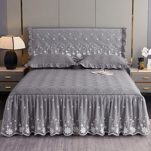 四季 床罩单件高级感双层纱花边床围床套防滑 通用公主风夹棉床裙式