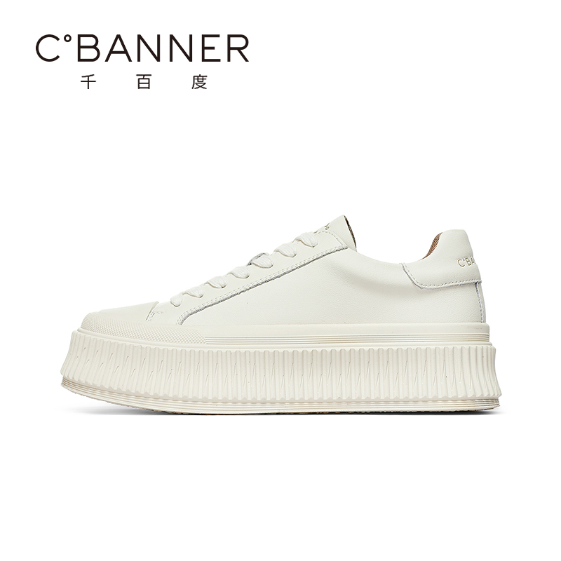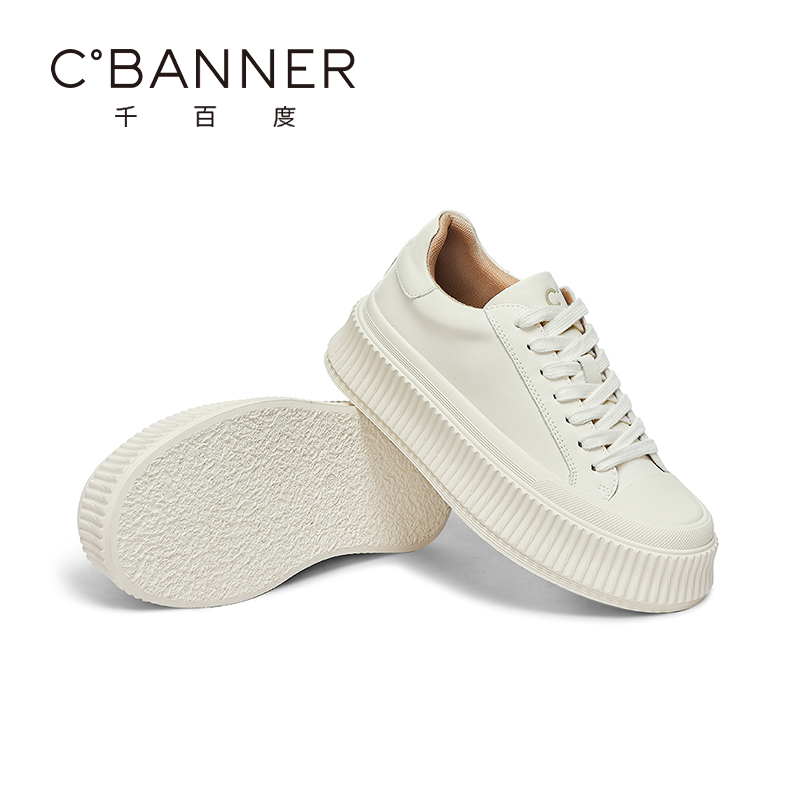 休闲板鞋 千百度小白鞋 百搭轻便厚底松糕增高饼干鞋 新款 女2025秋季