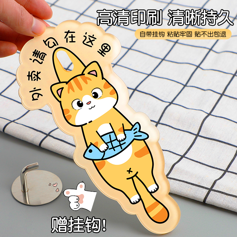外卖放门口指示牌高级快递请放这里存放处温馨提示标识挂钩墙贴定制亚克力家有恶猫卡通入户门牌家用装 饰挂牌