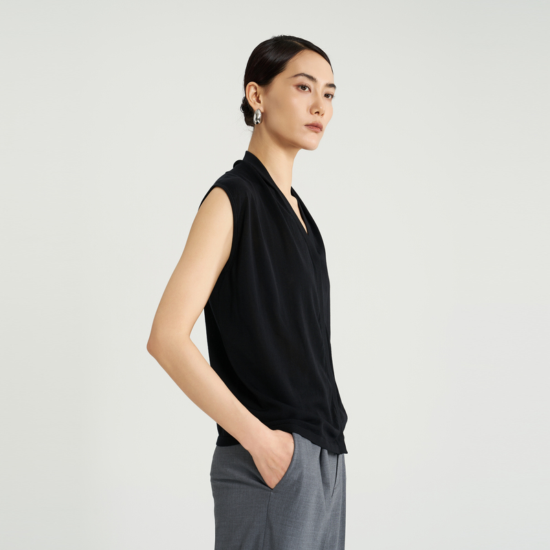 开衫 OTT 黑色堆领毛织背心女宽松无袖 春秋新款 马夹 商场同款