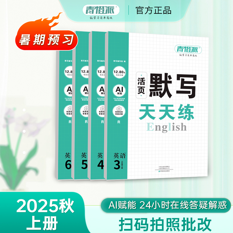 2025秋青橙派活页默写计算字帖一二三四五六年级下册同步练习语数英暑假天天练一课一练数学语文专项积累英语字词句试卷默写纸