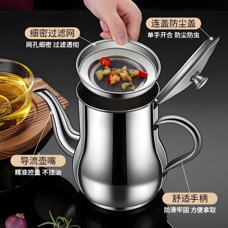 滤网油壶厨房家用不锈钢油壸防漏油罐安士装 油瓶容器滤油过滤神器