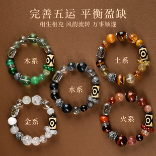 五行缺土喜用土手链天然水晶男女款 多宝财神手串平衡五行补土饰品