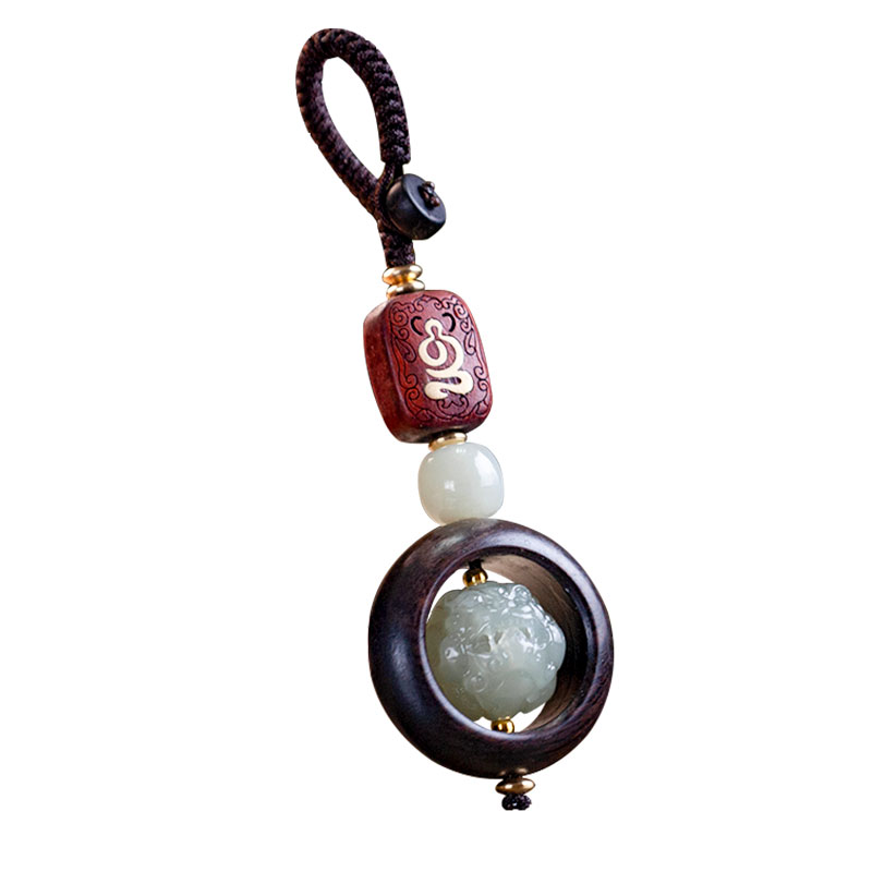 高档天然和田玉貔貅汽车钥匙扣挂件饰品圈坠绳转动男女级精致礼物