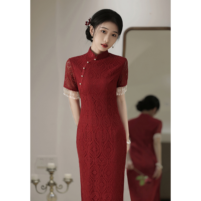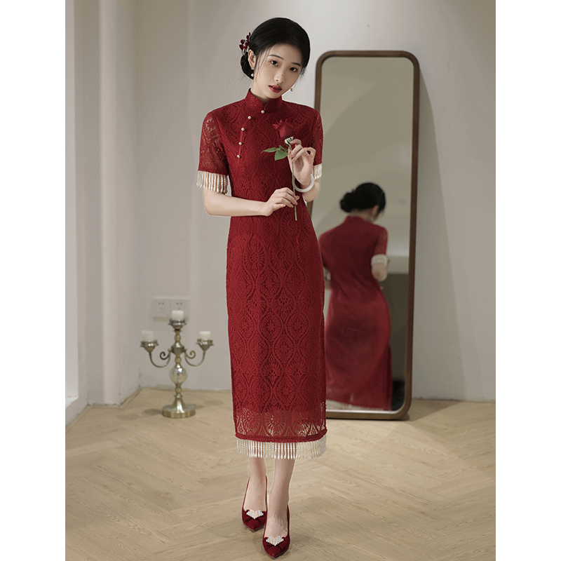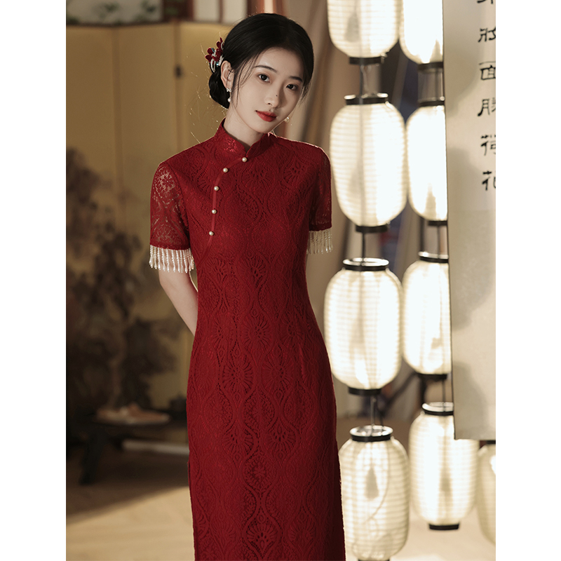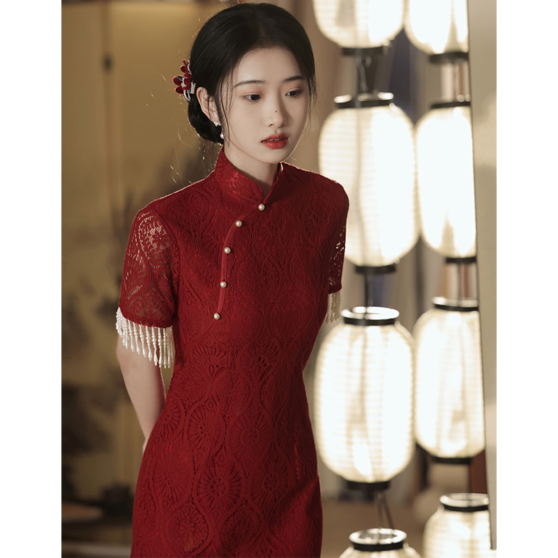 国风订婚敬酒礼服裙子 新中式 红色改良旗袍连衣裙女2025年秋季 新款