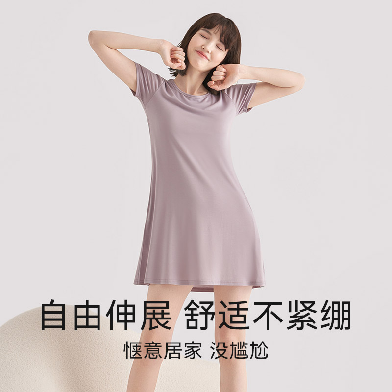 带胸垫莫代尔睡裙女带杯短袖 家居服 凉感睡衣抗菌显瘦防走光春夏季
