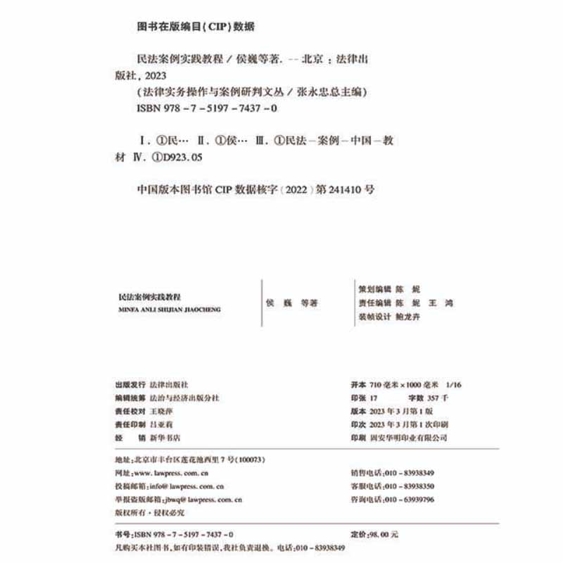 2023新书 法律出版 民法案例实践教程 法律实务操作与案例研判文丛 社9787519774370 侯巍 正版