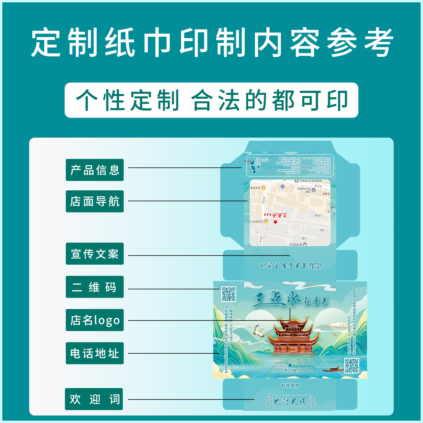 纸巾定制可印logo订做餐巾纸外卖定做餐厅饭店用方形纸巾批发广告