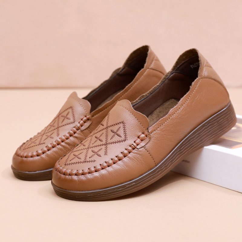子软底舒适防滑老人皮鞋 春秋中老年鞋 平底低跟百搭 真皮妈妈鞋 单鞋