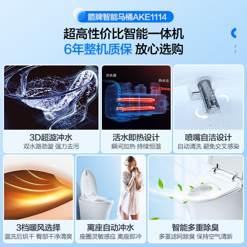箭牌卫浴官方旗舰正品 智能马桶加热除臭抗菌妇洗家用全自动坐便器