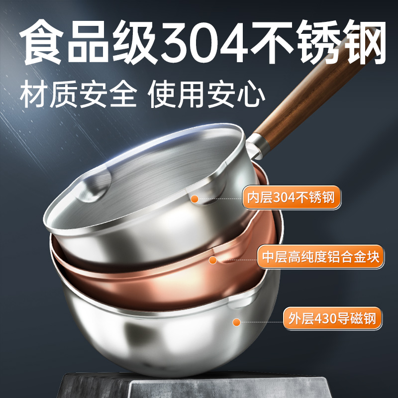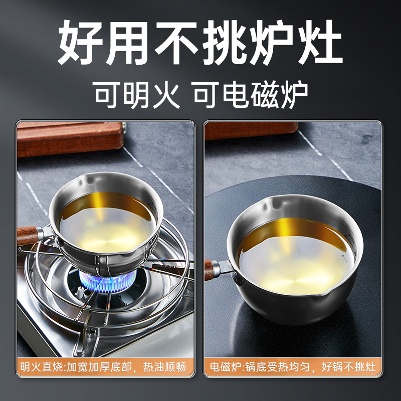 炊大皇泼油热油小锅迷你煎锅304不锈钢煎蛋饺神器淋油专用小铁锅