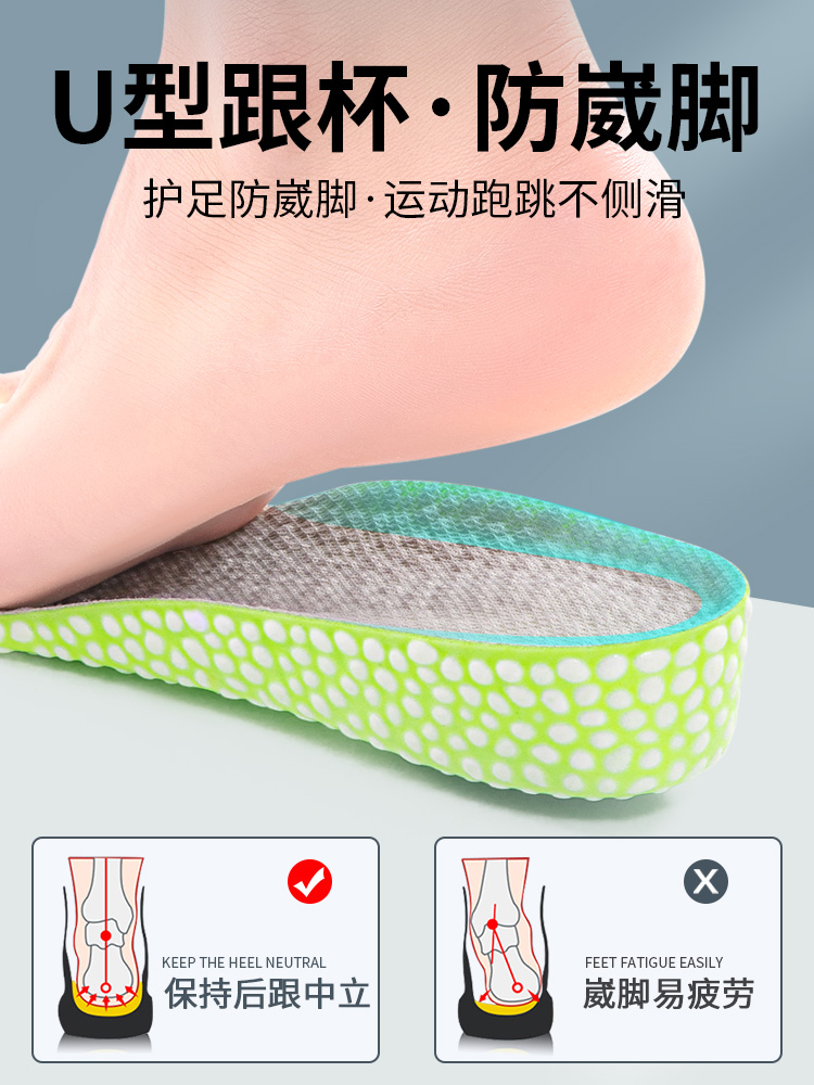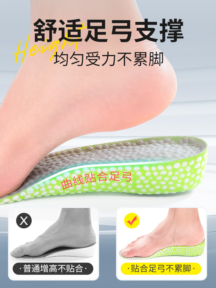 防臭内增高鞋 士软底舒适吸汗运动气垫减震隐形久站不累脚 垫男女款