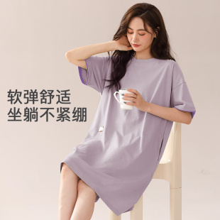 连衣裙女士A类睡衣家居服2025新 中长款 100%纯棉睡裙女春秋款 短袖