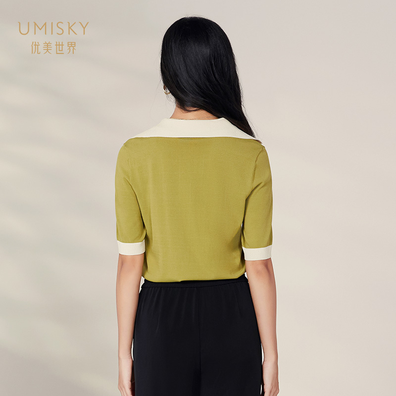 拼色翻领套头针织衫 法式 上衣SK1W3002 夏季 umisky优美世界专柜同款