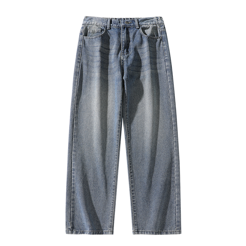 2025冬新款 王安宇同款 宽松弧形裤 男做旧复古阔感弯刀裤 森马牛仔裤