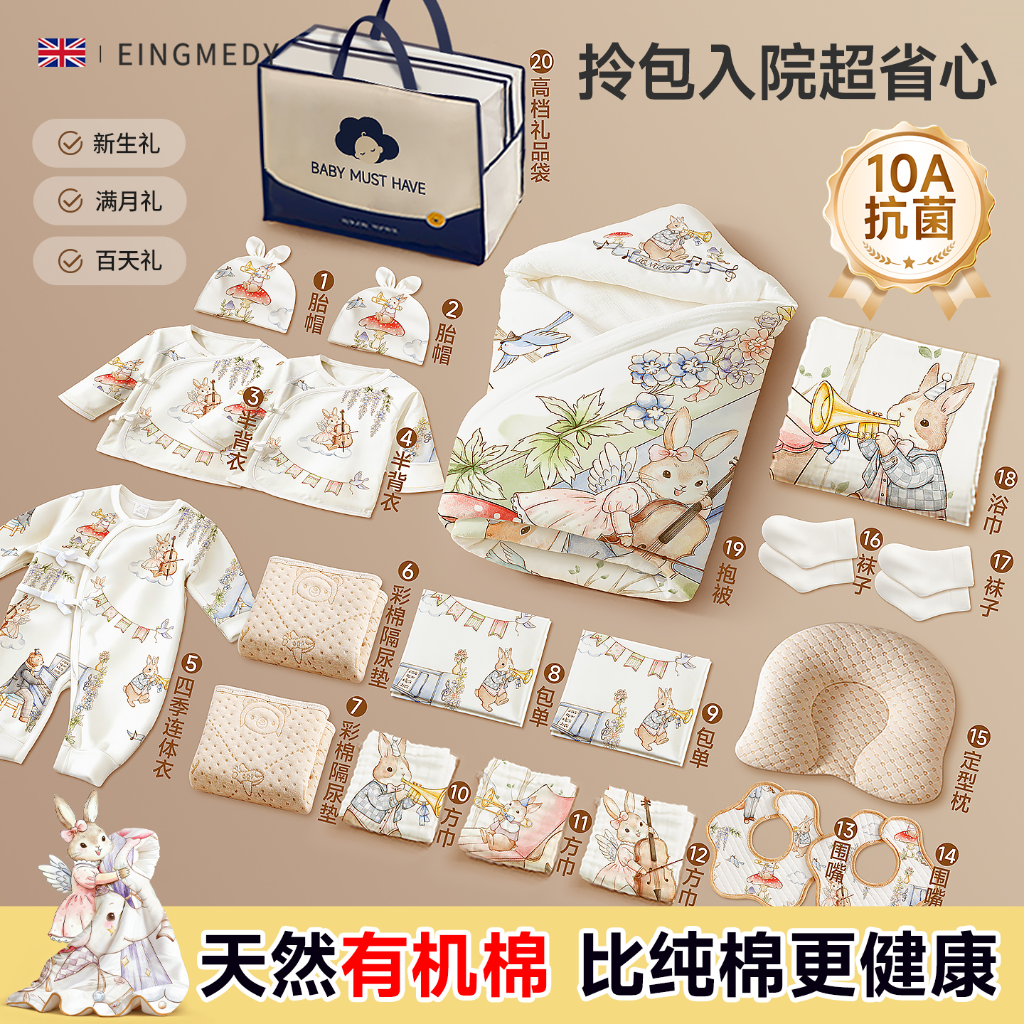蛇宝初生婴儿礼盒全纯棉衣服套装 新生儿见面礼待产包时代满月用品