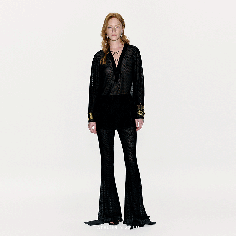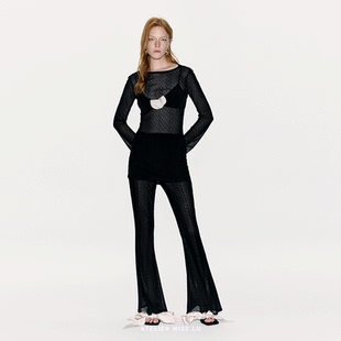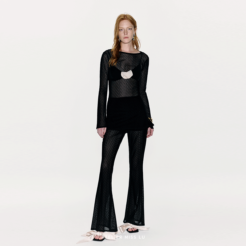 2025春夏LOGO植绒设计透视喇叭裤 AtelierMissLu 夜与法兰西