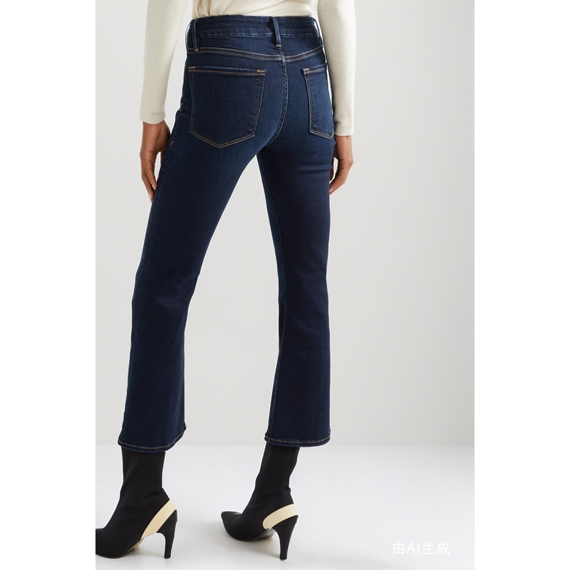 抢先购 女修身 经典 FRAME 简约高腰棉质微喇牛仔裤 款