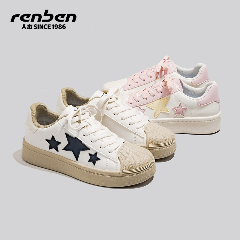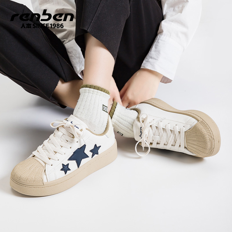 复古星星百搭休闲小众运动小白鞋 2025春秋新款 女款 人本贝壳头板鞋
