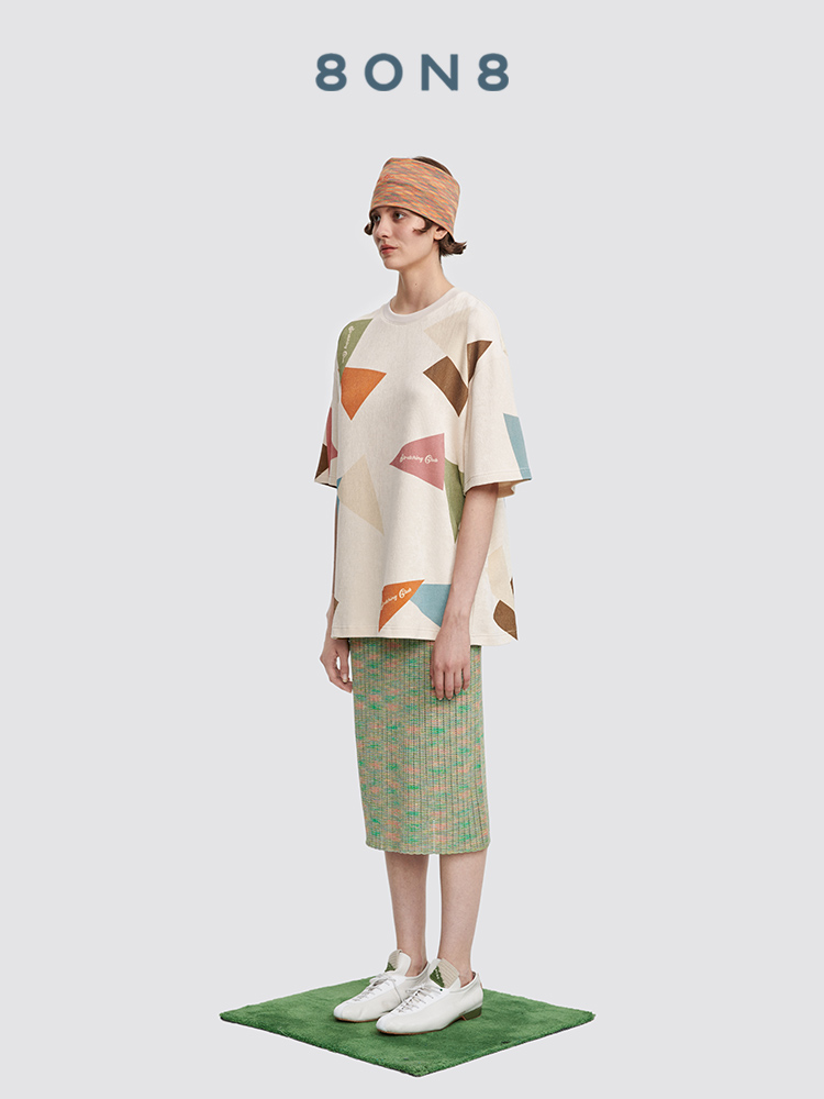 几何图形撞色 T恤休闲宽松男女同款 8ON8拉伸俱乐部新款 SClogo短袖