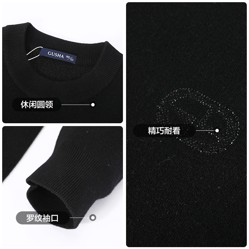 远红外圆领黑色毛衣男 25秋新款 HLA 海澜之家山不在高含羊毛针织衫