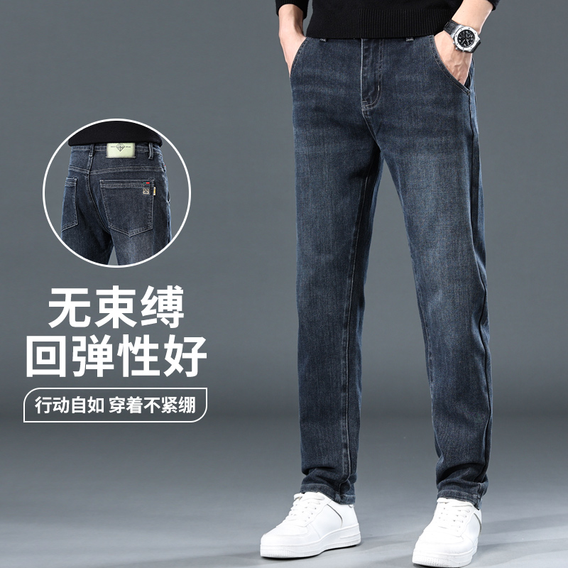 显瘦显高直筒裤 森马牛仔裤 秋季 窄版 子弹力质感 男潮流复古水洗长裤