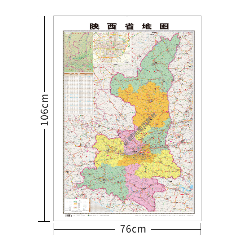 陕西省地图挂图大尺寸106 2023升级版 可挂可贴 76cm高清覆膜防水挂杆信息资料儿童房家用办公商务会议室交通行政区划 卷筒发货