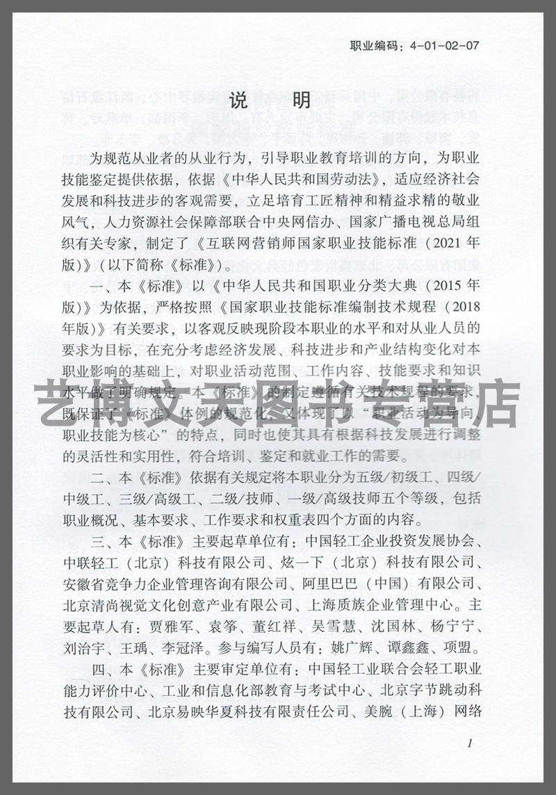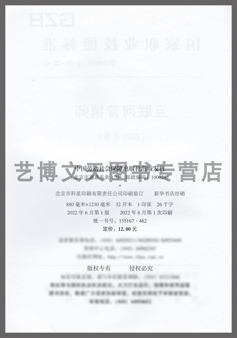 中国劳动社会保障出版 互联网营销师 155167.462 国家职业技能标准 社 2021年版