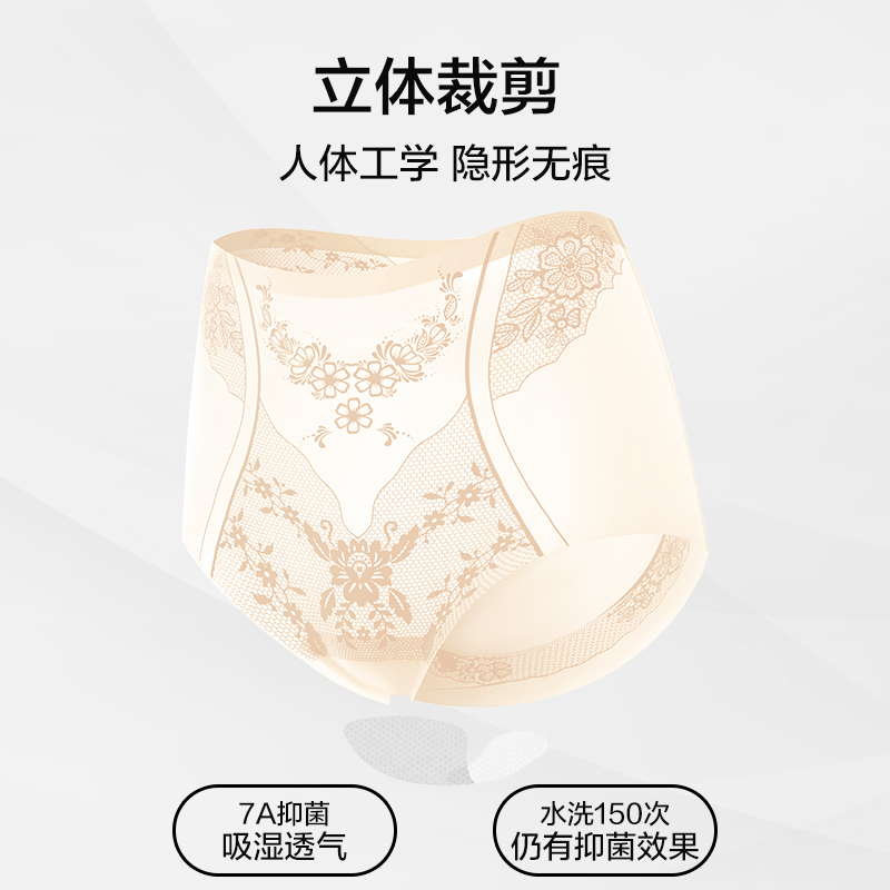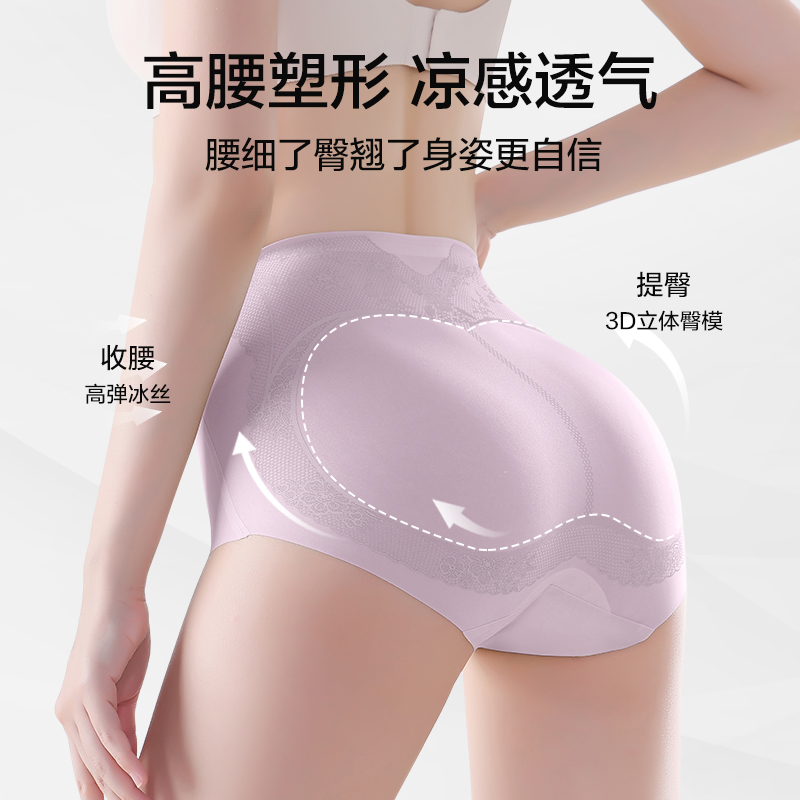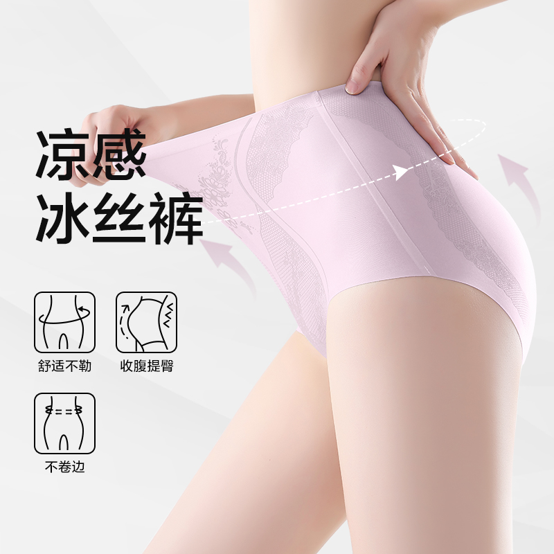 猫人高腰收腹内裤 女 女士超薄无痕提臀裸感冰丝纯棉抑菌裆三角短裤