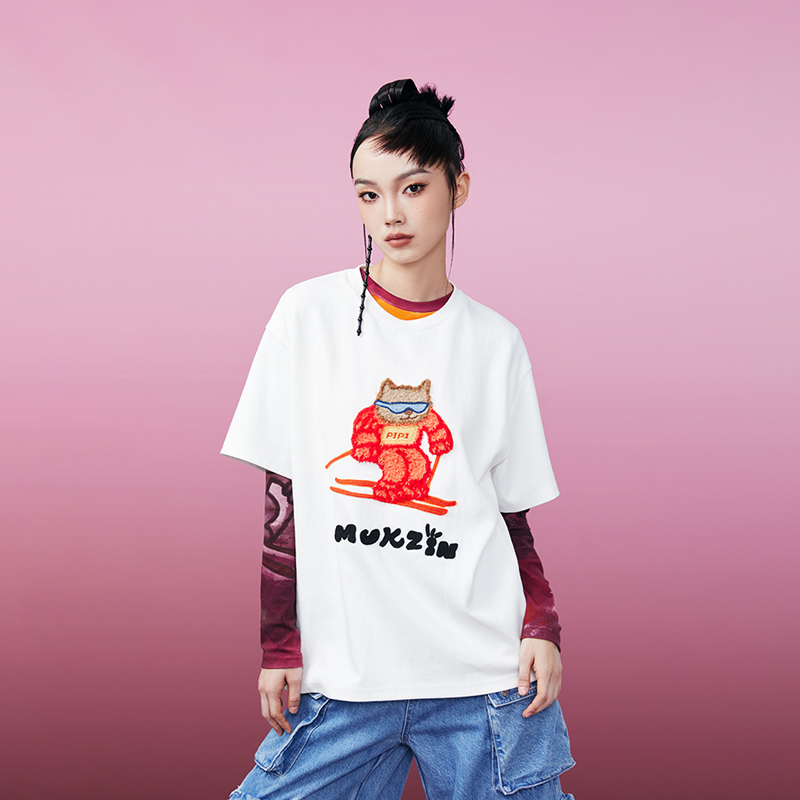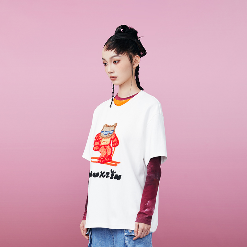 密扇游龙戏凤系列毛绒立体仿手钩刺绣T恤 粘粘艺术家联名款
