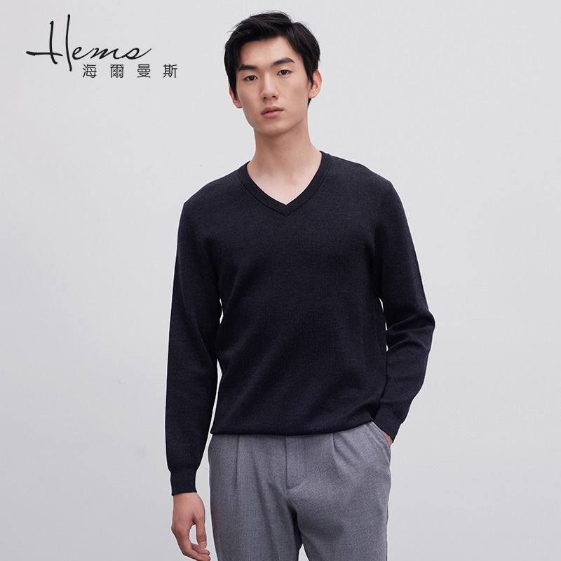 25秋新可机洗打底毛衣男 海澜之家轻商务纯羊毛针织衫 礼盒可选