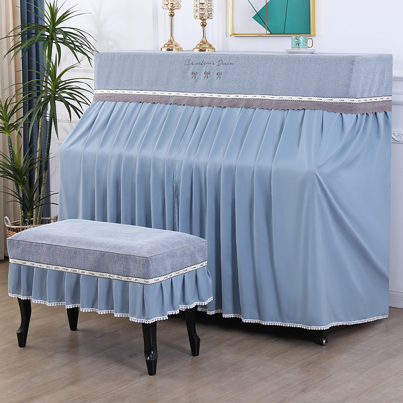 加厚布艺钢琴罩欧式 轻奢钢琴全罩中开钢琴套弹琴不取防尘罩琴凳罩
