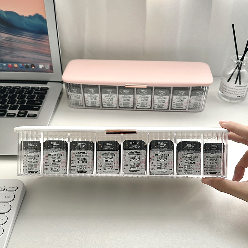 新款 美瞳收纳盒多副带盖防尘大容量日抛隐形眼镜多分格透明便携盒