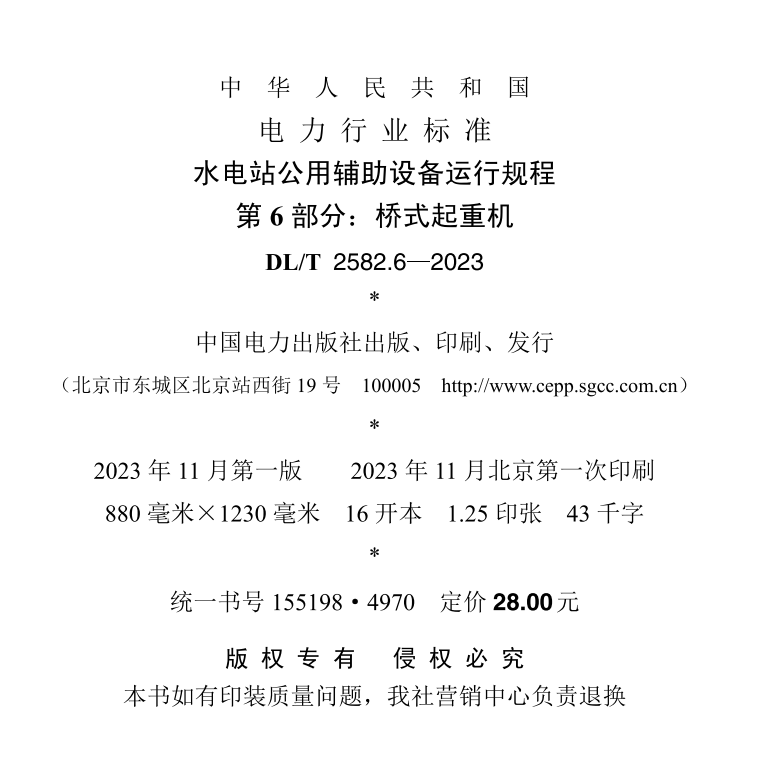 按需印刷 第6部分:桥式 DL/T 水电站公用辅助设备运行规程 起重机 2582.6—2023