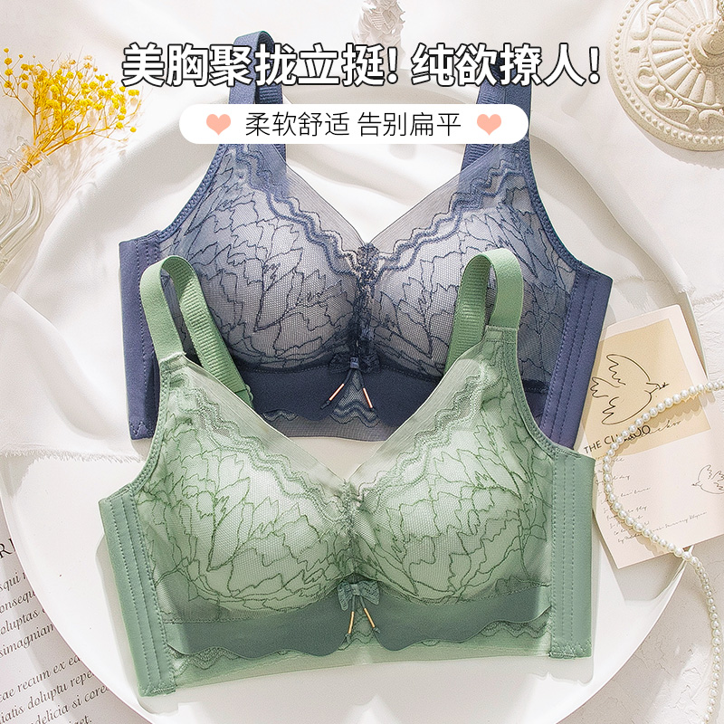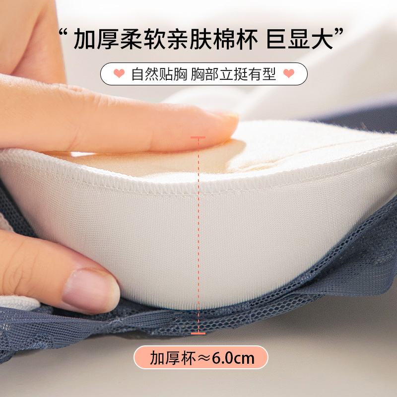 千奈美大胸显小内衣女薄款 全罩杯收副乳防下垂显胸小文胸 无痕大码