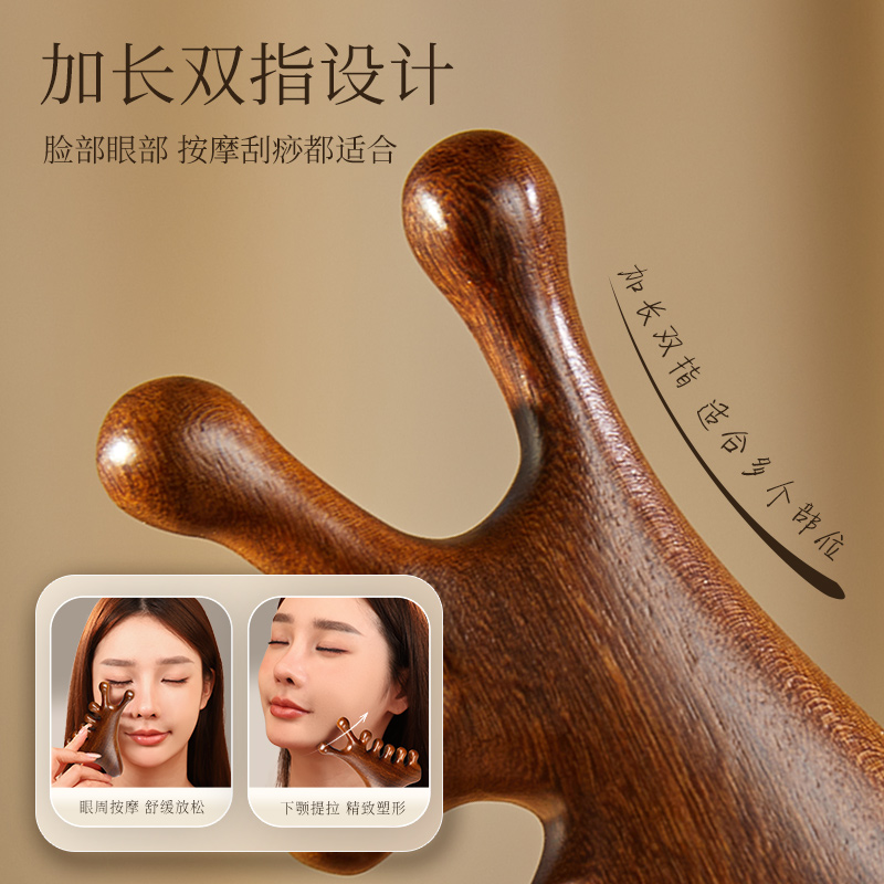 四合一多功能檀木梳头皮按摩梳子头部疏通经络神器脸部4合一刮痧