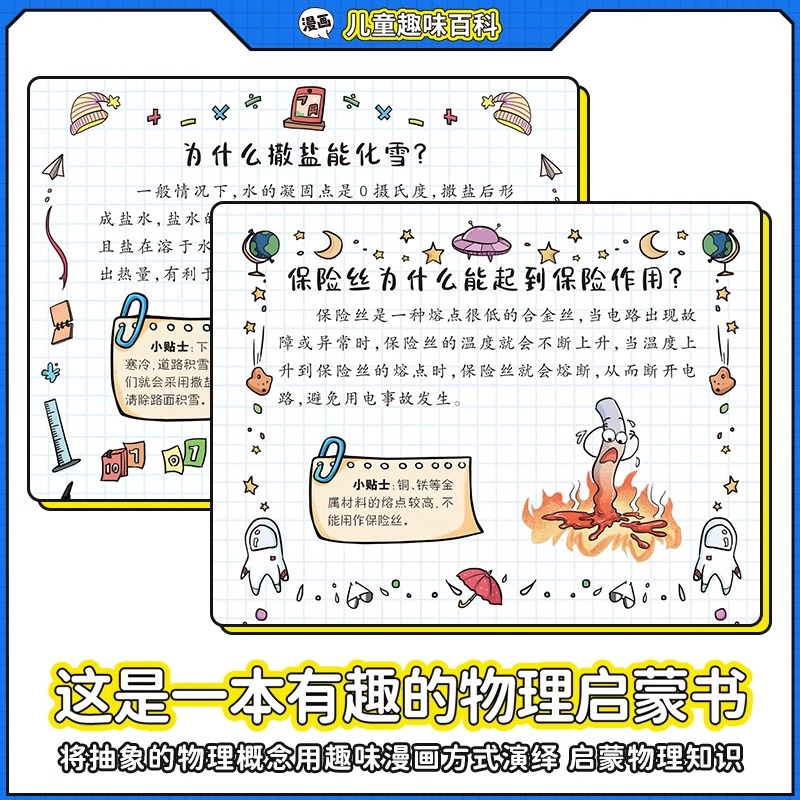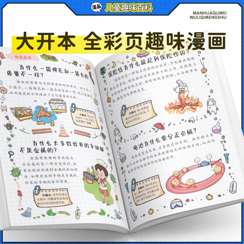 初中小四门小学生阅读课外书籍数理化绘本有趣科学知识优秀 全套3册儿童百科全书漫画版 抖音同款 漫画趣味物理化学数学启蒙书正版