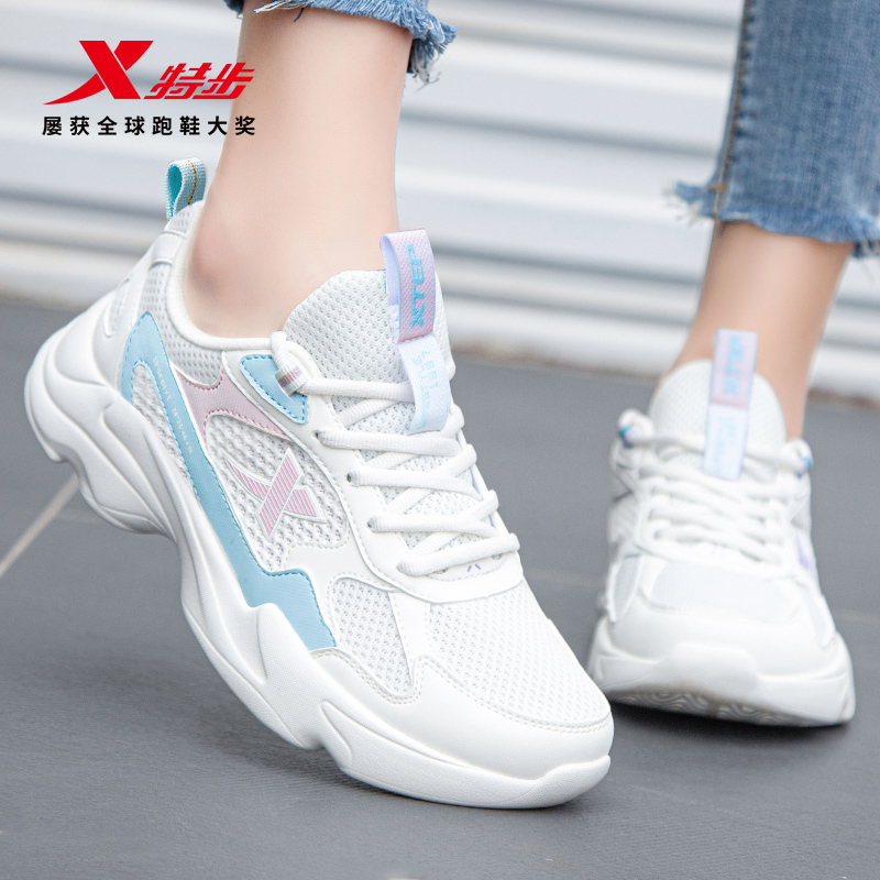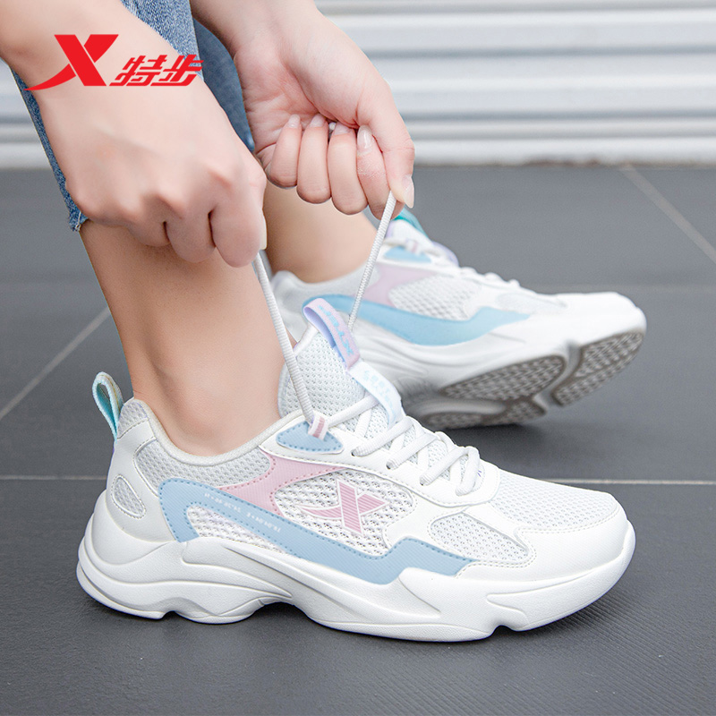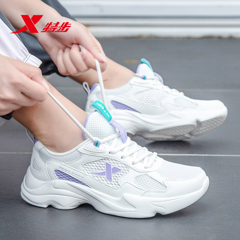 小白鞋 女款 2025新款 秋季 女 特步女鞋 网面透气轻便软底运动鞋 老爹鞋