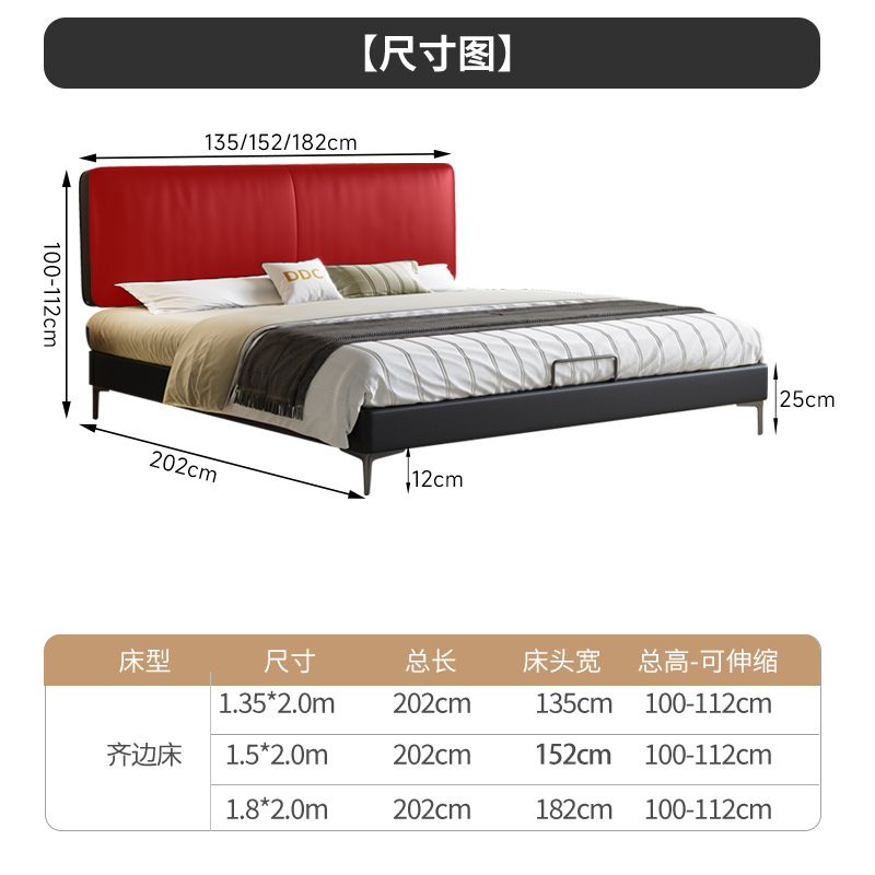 政府补贴DDC极薄床头主卧真皮床豆腐块不占地方 床简约小户型