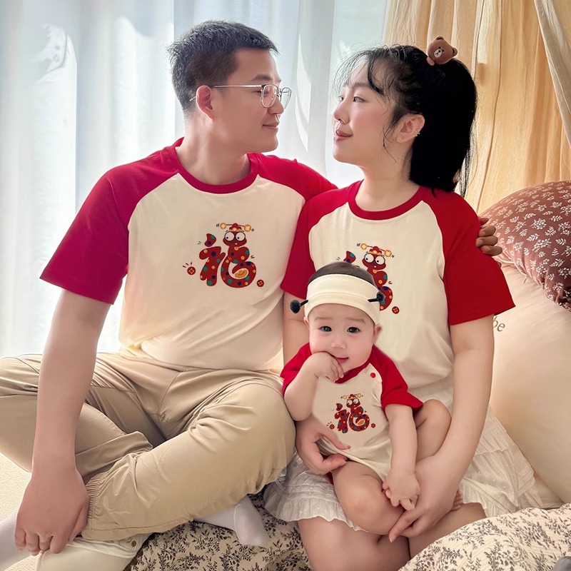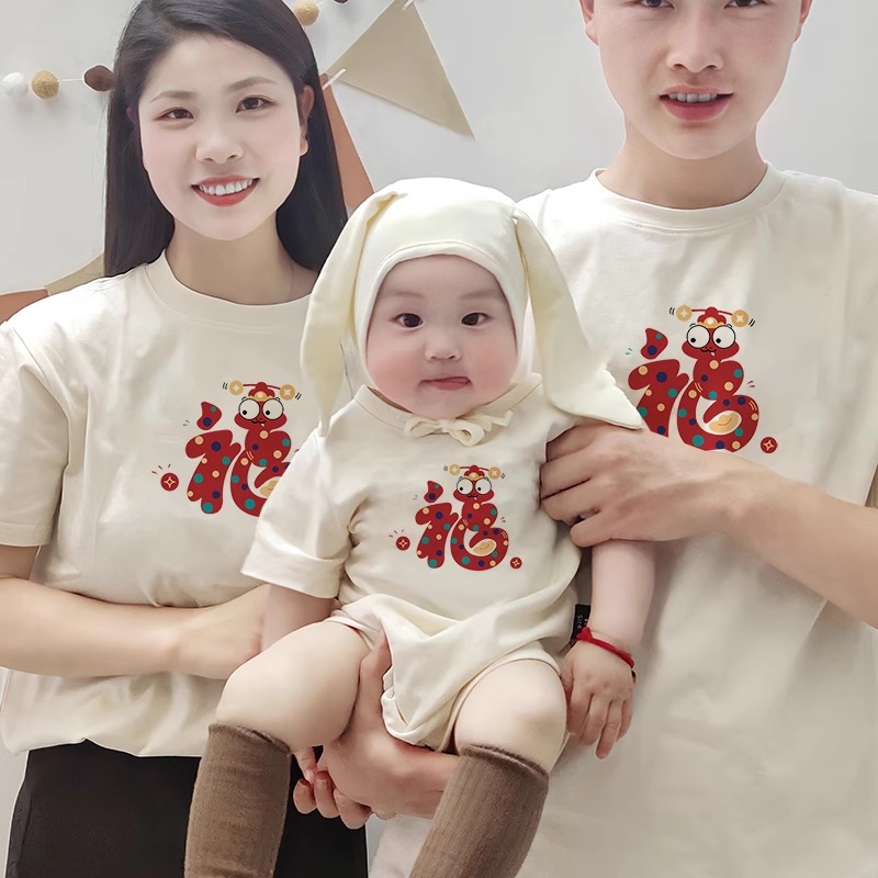 婴儿百天照亲子装 潮 T恤一家三口四口全家福宝宝满月周岁写真短袖