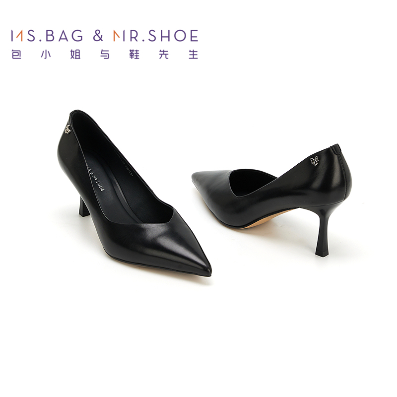 简约黑色牛皮高跟浅口单鞋 新品 女251137 先生2025年春款 包小姐与鞋