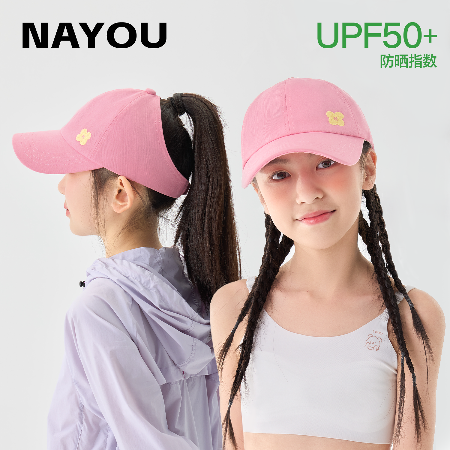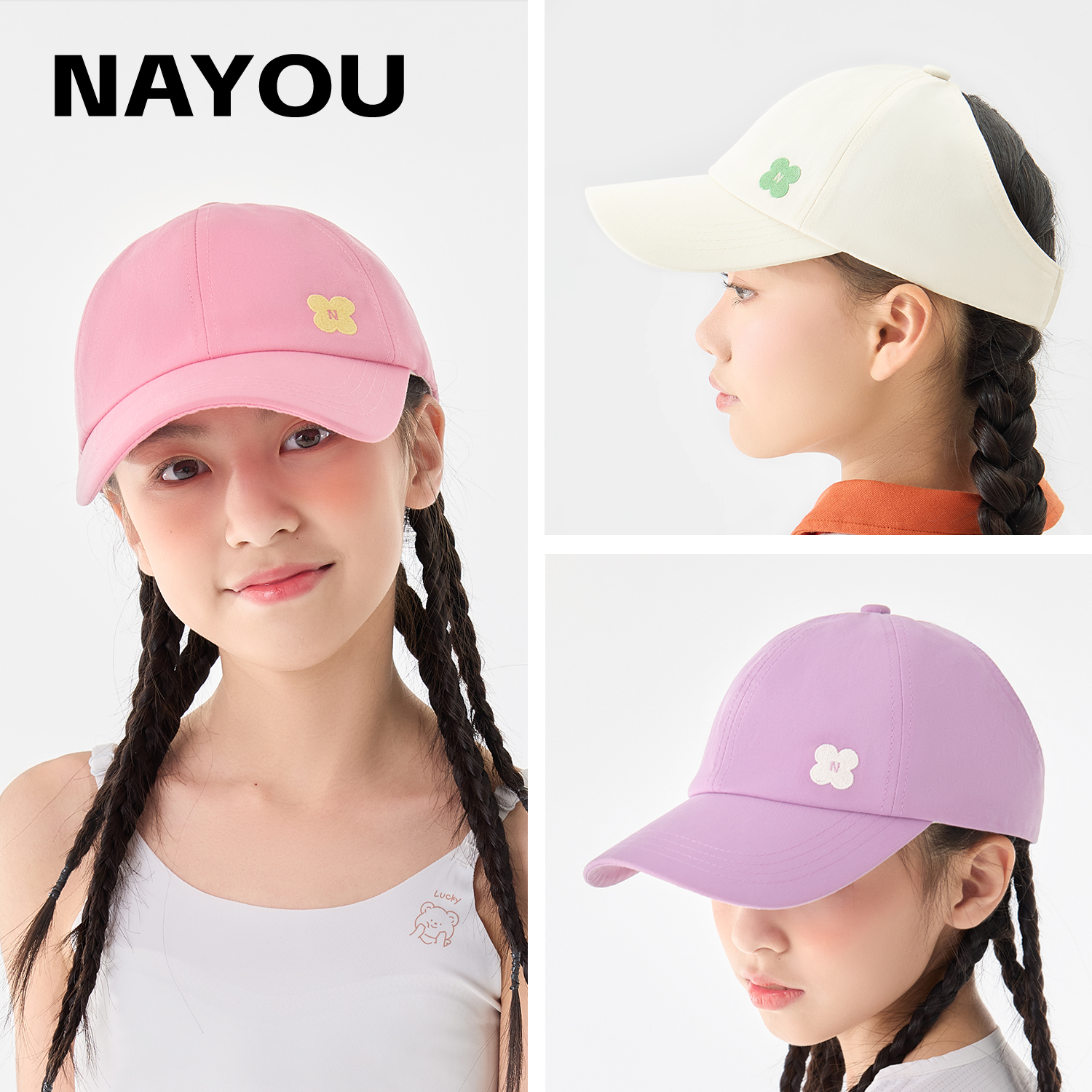 纳柚2025儿童帽子春夏100%棉鸭舌帽女童棒球帽中大童半空顶遮阳帽