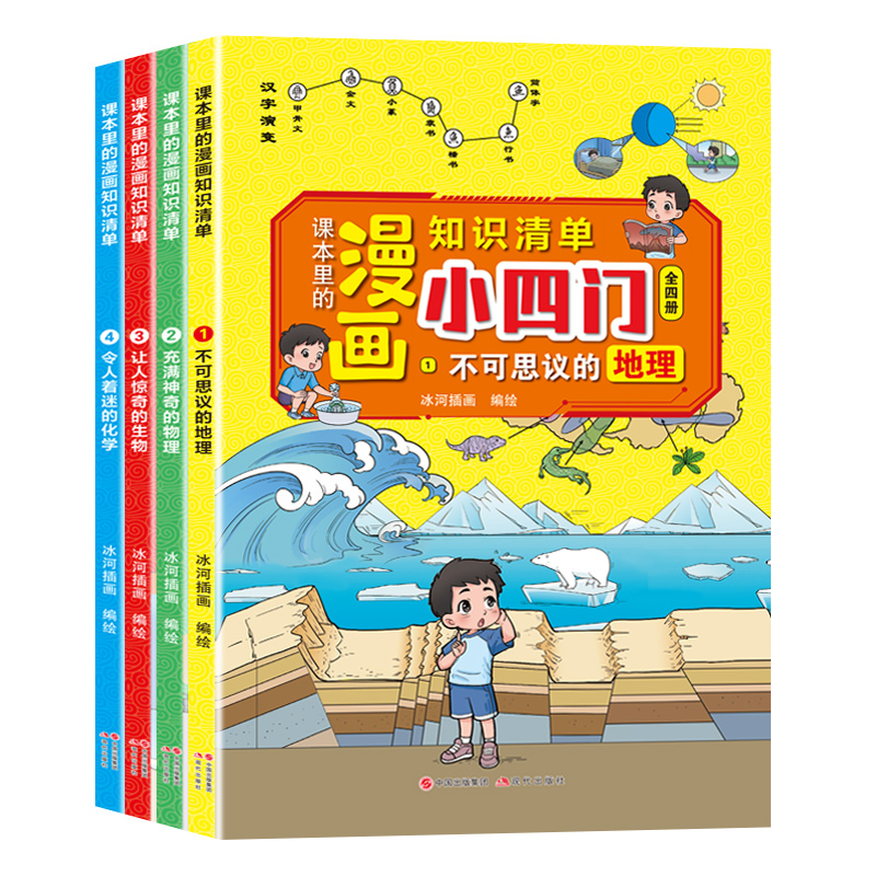 儿童百科知识全书科学科普绘本阅读课外书籍 小四门漫画版 全4册 漫画趣味小四门启蒙书物理化学生物地理启蒙书全套正版