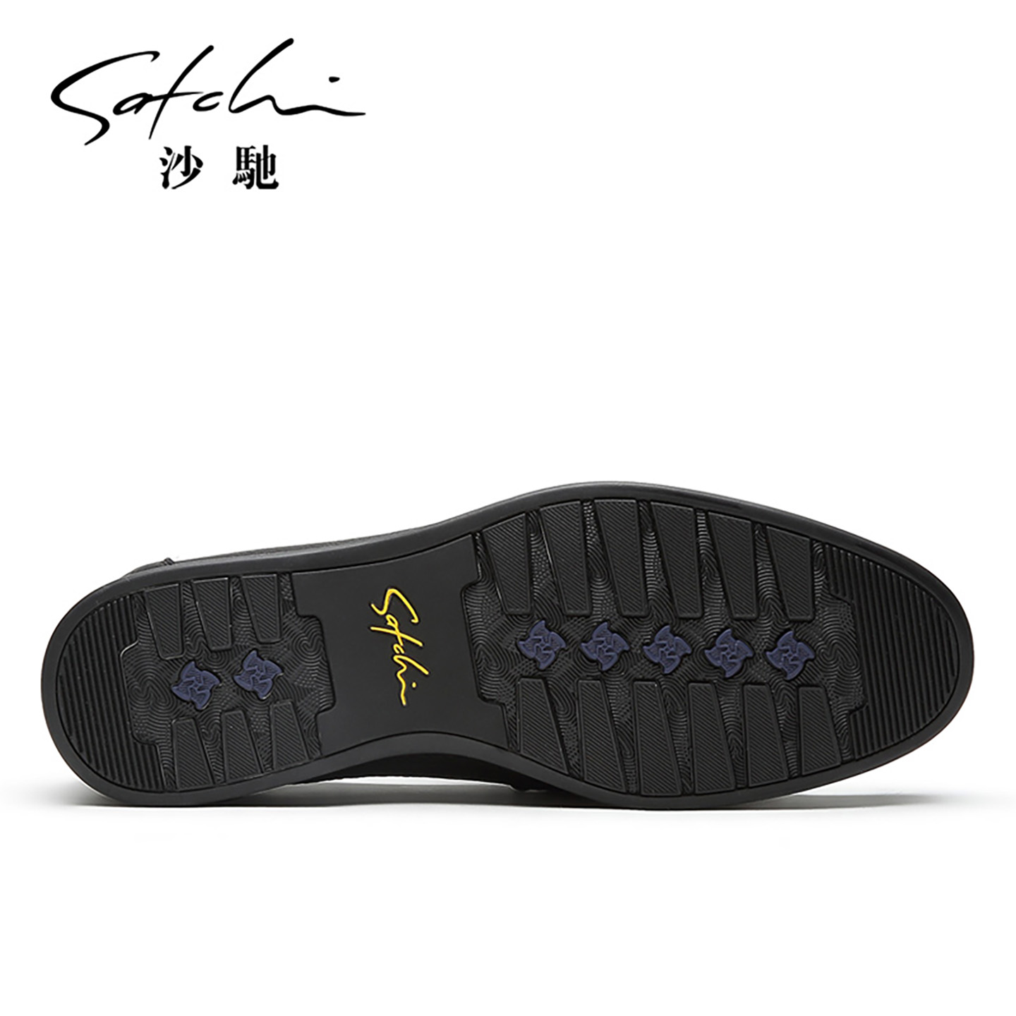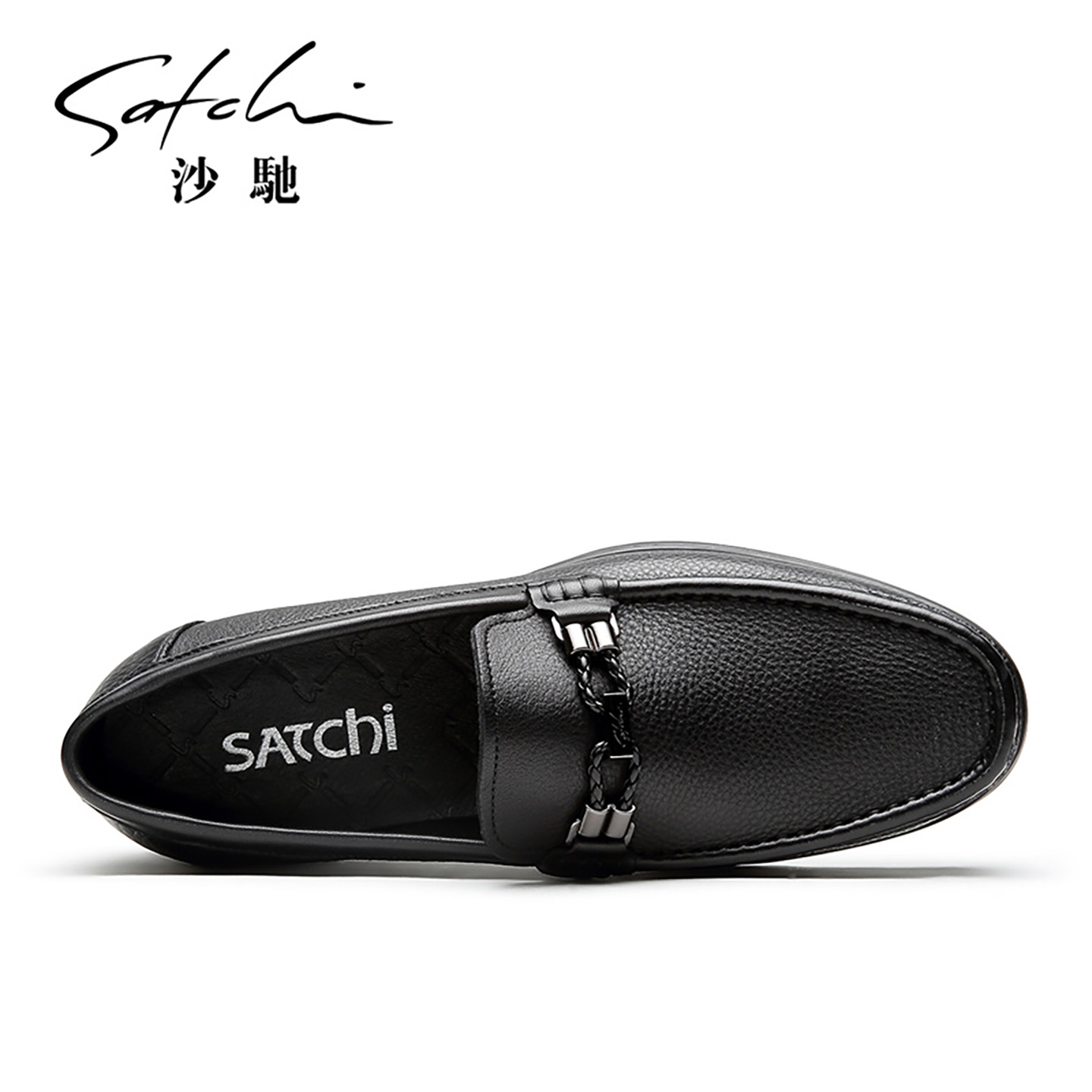 弹软减震黑色百搭 真皮头层牛皮套脚商务休闲皮鞋 沙驰男鞋 男士