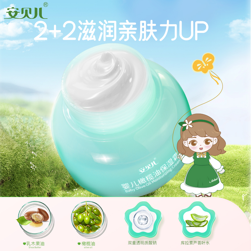 安贝儿宝宝面霜儿童面霜补水保湿 面霜100g大容量面霜 橄榄油保湿